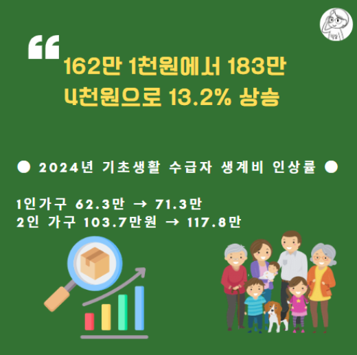2024년 기준 1인 가구 생계급여 최대 금액은 약 50만 원 수준입니다. 의료급여 기초생활수급자는 의료급여 1종 또는 2종 수급권자로 지정되어 의료비 지원을 받습니다. 의료급여 1종은 입원, 외래, 약제비 등 의료서비스 이용 시 본인부담금이 면제되며, 2종은 본인부담률이 낮습니다.